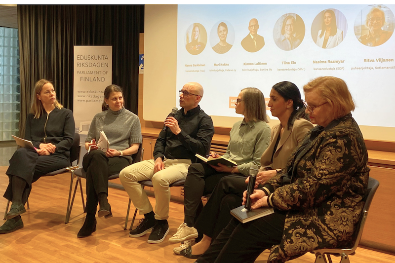 Tilaisuuden päättäneessä paneelikeskustelussa pohdittiin, mitä päätöksenteossa tulisi tehdä, jotta yhteiskunnallisten yritysten potentiaali saadaan Suomessa täysimääräisesti käyttöön. Keskusteluun osallistuivat kansanedustaja Hanna Sarkkinen (Vas.), Osuuskuntien Keskusjärjestö Pellervo ry:n toimitusjohtaja Mari Kokko, SunUra Oy:n toimitusjohtaja Kimmo Laitinen, kansanedustaja Tiina Elo (Vihr.), kansanedustaja Nasima Razmyar (SDP) sekä Suomen Setlementtiliiton puheenjohtaja Ritva Viljanen.